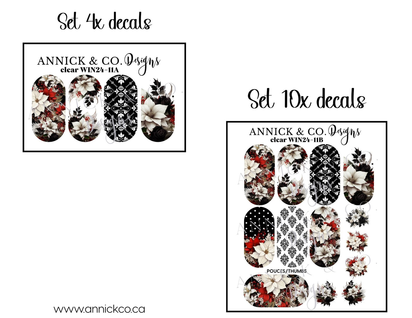 Décalques à transfert d'eau pour ongles fleures d'hiver et de Noël