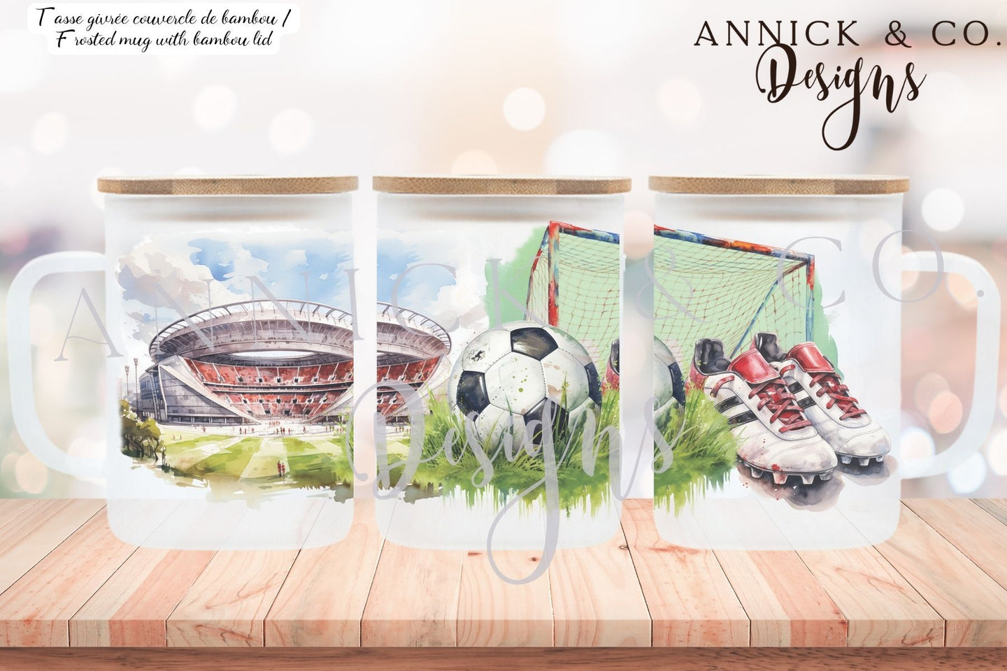 Le design parfait pour le ou la joueur(se) de soccer est disponible sur tasse de 15oz et/ou gobelet à café glacé de 16oz.